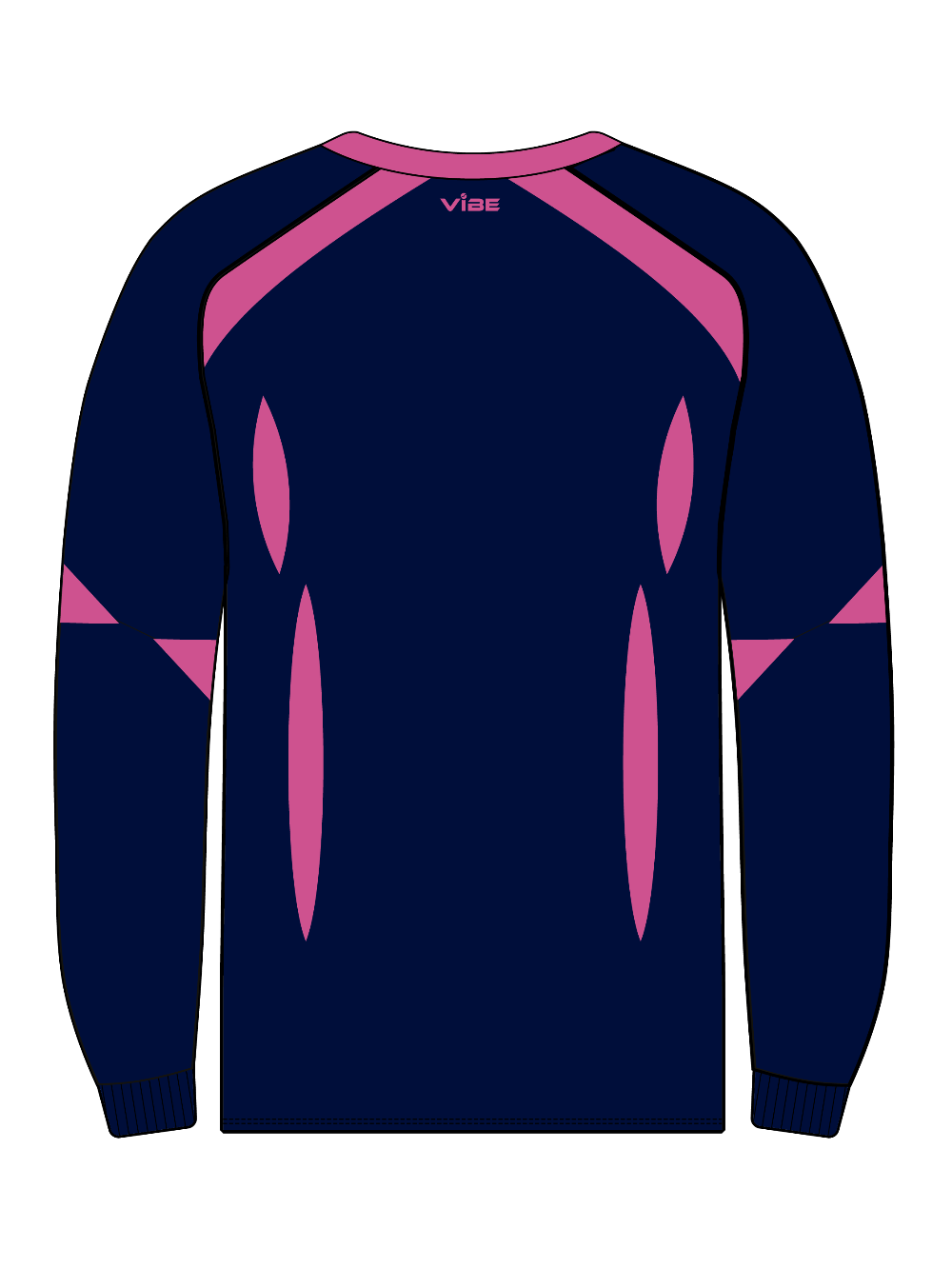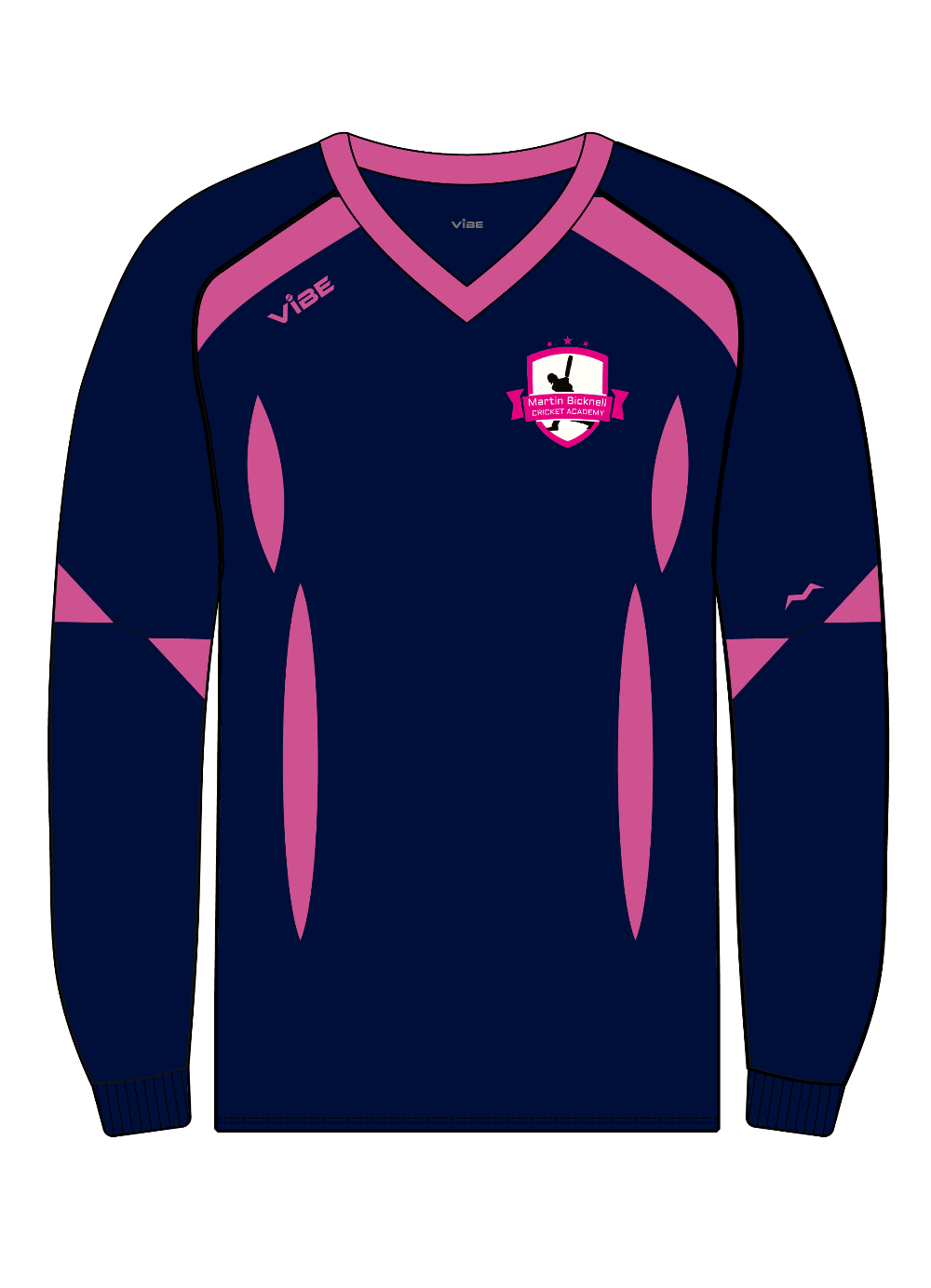 V-neck sweater, fleece-lined, keeps you warm on the coldest of days. Navy with Pink trim.